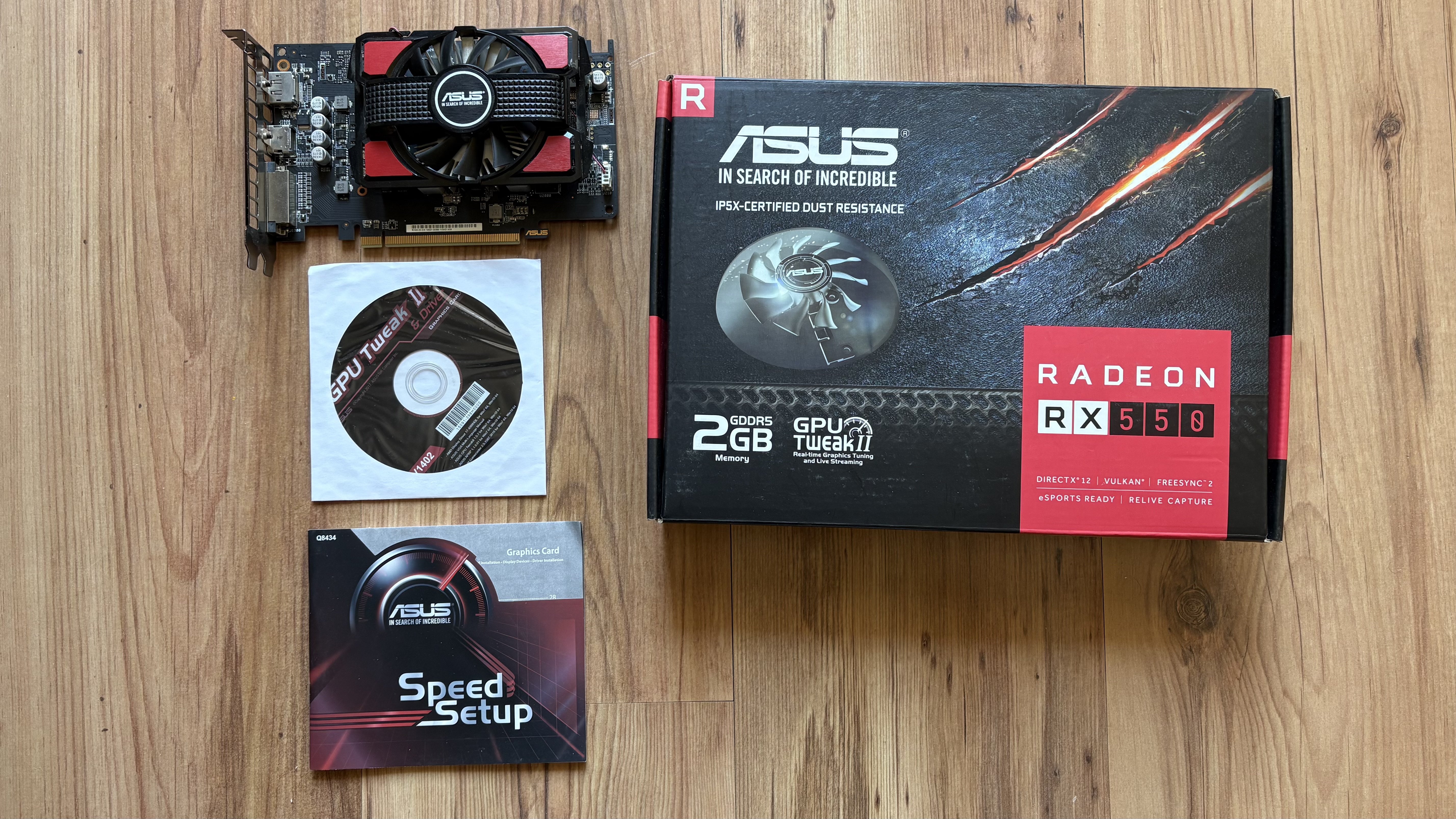 ASUS Radeon RX550 video kártya dobozával
